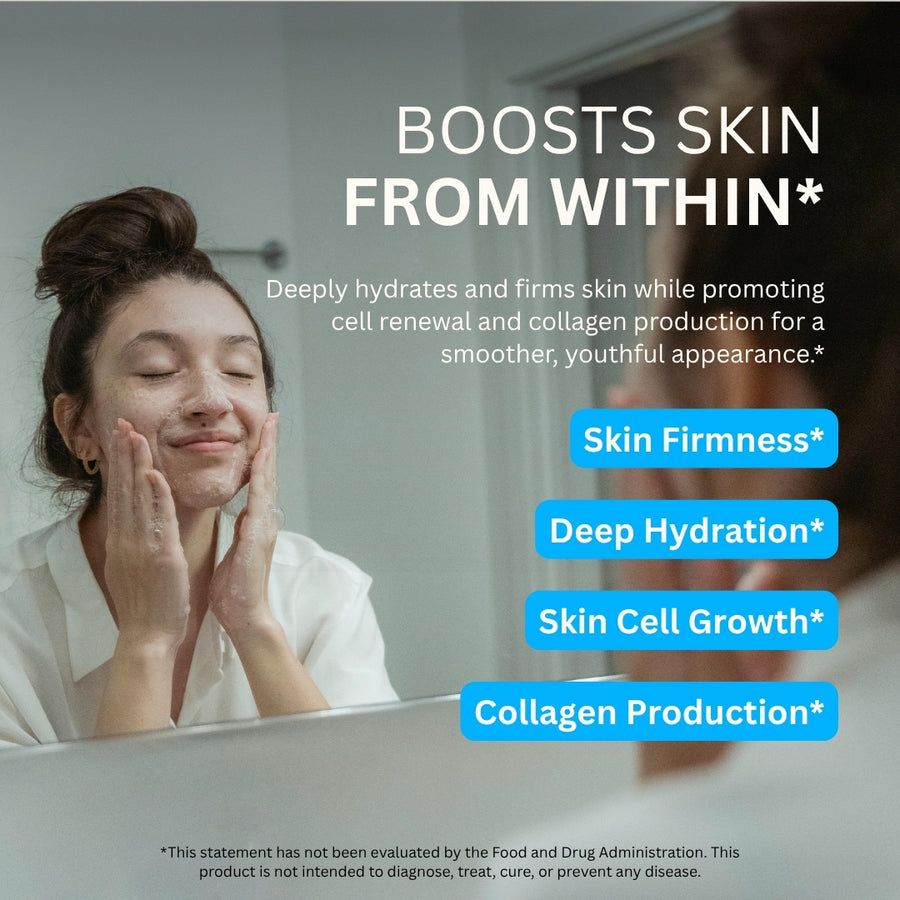 Our formula is a powerhouse blend of collagen, colostrum, vitamin C, hyaluronic acid, and biotin, designed to support radiant skin, strong hair, and overall wellness.